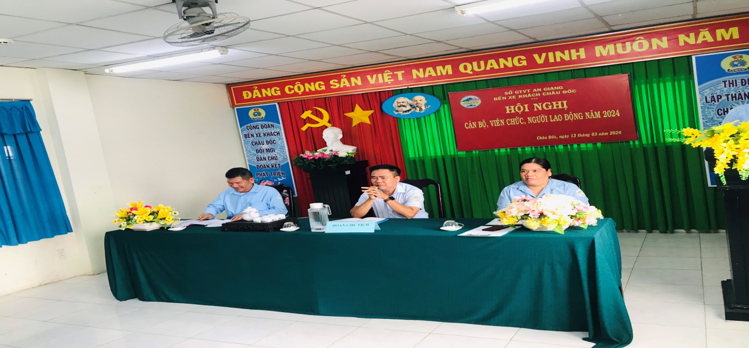Sáng ngày 13/03/2024, Bến xe khách Châu Đốc phối hợp với BCH Công đoàn đơn vị tổ chức Hội nghị viên chức, người lao động và triển khai nhiệm vụ năm 2024.