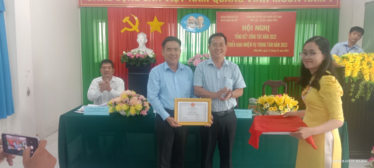 Sáng ngày 11/01/2023 Bến xe khách Châu Đốc long trọng tổ chức Hội nghị Tổng kết công tác năm 2022 và triển khai phương hướng nhiệm vụ năm 2023. Giám đốc Bến xe khách Châu Đốc Phạm Đăng Lên chủ trì hội nghị.