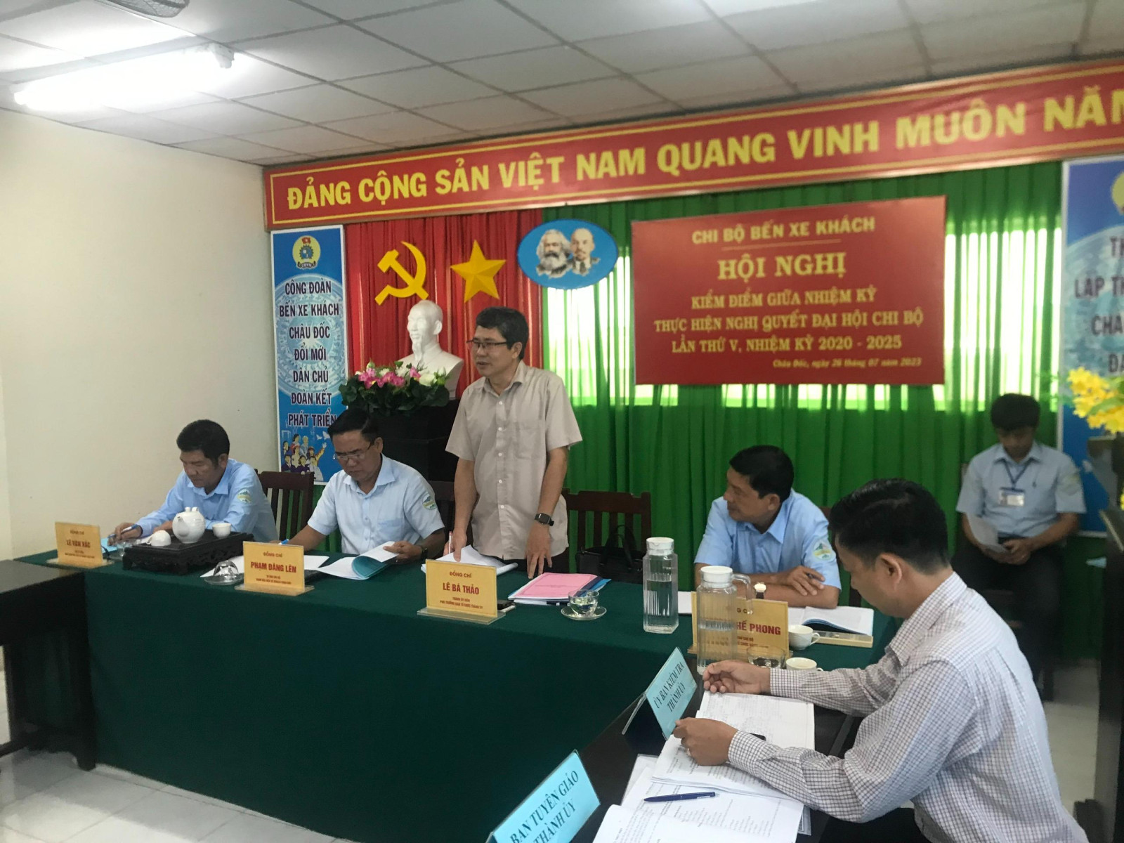 Sáng 26/7/2023, Chi bộ Bến xe khách tổ chức Hội nghị kiểm điểm giữa nhiệm kỳ thực hiện Nghị quyết Đại hội Chi bộ lần thứ V, nhiệm kỳ 2020 - 2025. Đồng chí Lê Bá Thảo, Thành ủy viên, Phó Trưởng Ban Tổ chức Thành ủy đến dự và chỉ đạo.