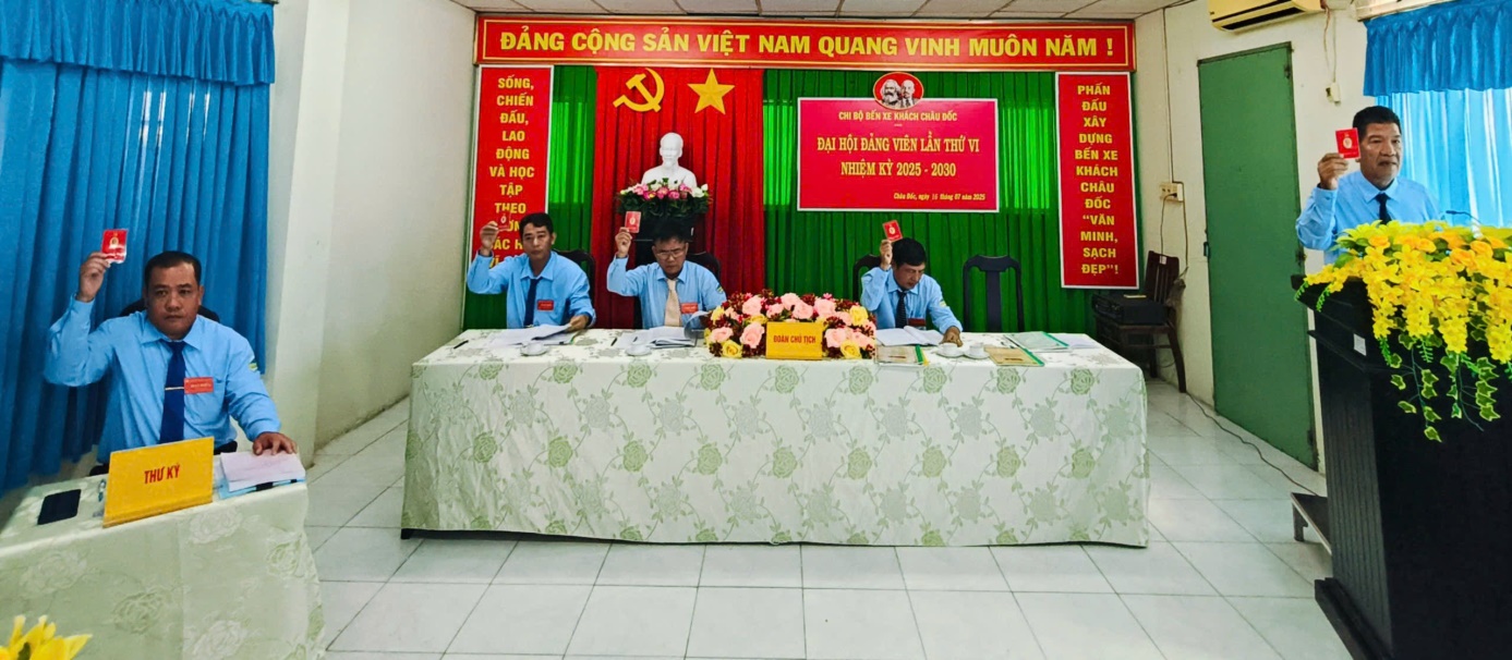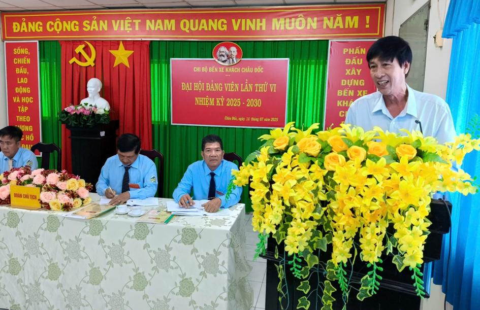 Sáng ngày 16/7/2025, Chi bộ Bến xe khách Châu Đốc tổ chức Đại hội đảng viên Chi bộ Bến xe khách Châu Đốc lần thứ VI, nhiệm kỳ 2025 – 2030.