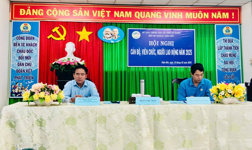 Ngày 19/02/2025, Bến xe khách Châu Đốc phối hợp Công đoàn cơ sở tổ chức thành công Hội nghị viên chức, người lao động năm 2025. Hội nghị là dịp để cán bộ, viên chức và người lao động cùng đánh giá kết quả hoạt động trong năm qua, đề ra phương hướng, nhiệm vụ cho năm tới và đóng góp ý kiến nhằm nâng cao chất lượng công tác, xây dựng đơn vị ngày càng vững mạnh.