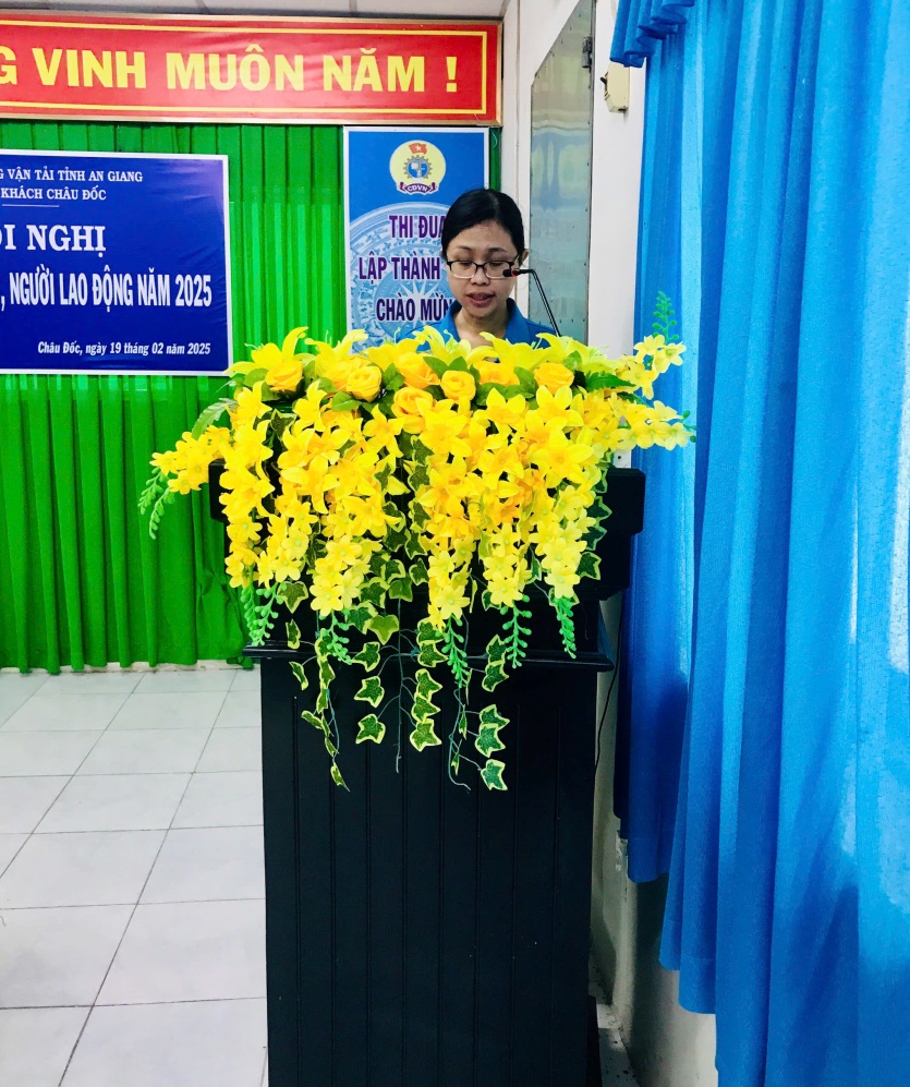 Tại hội nghị, đ/c Trần Mỷ Linh thay mặt Công đoàn cơ sở báo cáo kết quả thực hiện phong trào thi đua năm 2024 và phát động phong trào thi đua năm 2025; báo cáo kết quả thu, chi kinh phí công đoàn 2024.