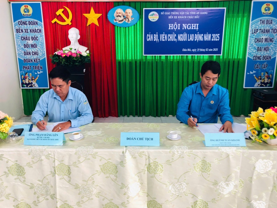 Cũng tại Hội nghị Giám đốc Bến xe khách Châu Đốc và Chủ tịch Công đoàn cơ sở ký giao ước thi đua năm 2025.