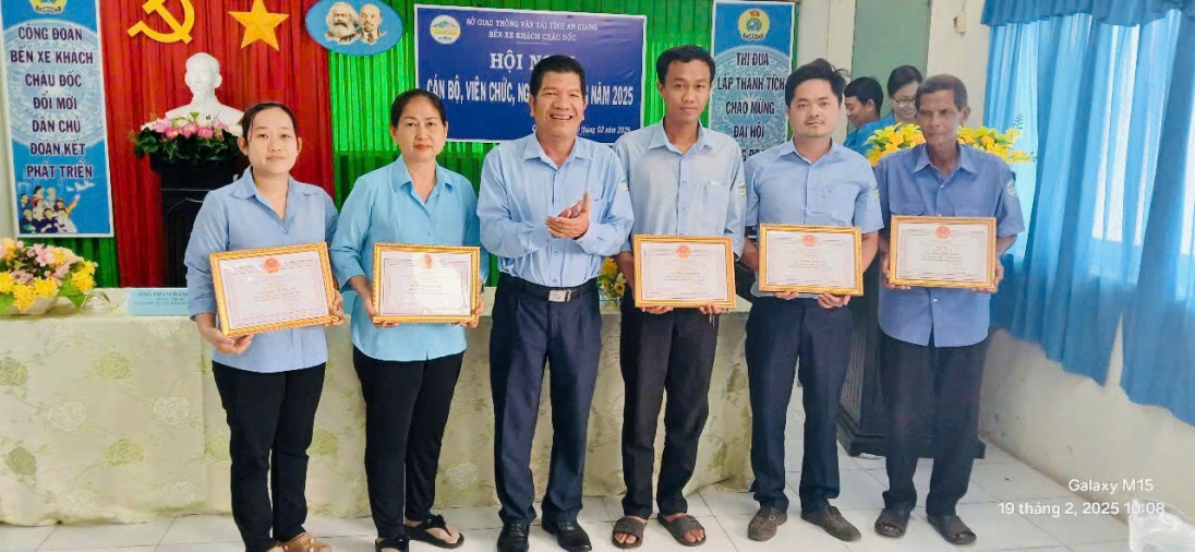 Bên cạnh đó, Công đoàn cơ sở Bến xe khách Châu Đốc trao tặng giấy khen cho Công đoàn viên đạt danh hiệu “Đoàn viên Công đoàn xuất sắc”.